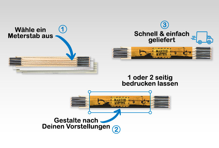 Das Bedrucken von Doppelmeter bietet eine grossartige Möglichkeit, Ihre Marke zu fördern. Ob für Werbezwecke oder als professionelles Werkzeug für Ihr Team, ein bedruckter Doppelmeter kann mit Ihrem Firmenlogo, Slogan oder speziellen Grafiken versehen werden. Dies schafft nicht nur ein einheitliches Erscheinungsbild, sondern erhöht auch die Wiedererkennbarkeit Ihrer Marke bei Kunden und Partnern.